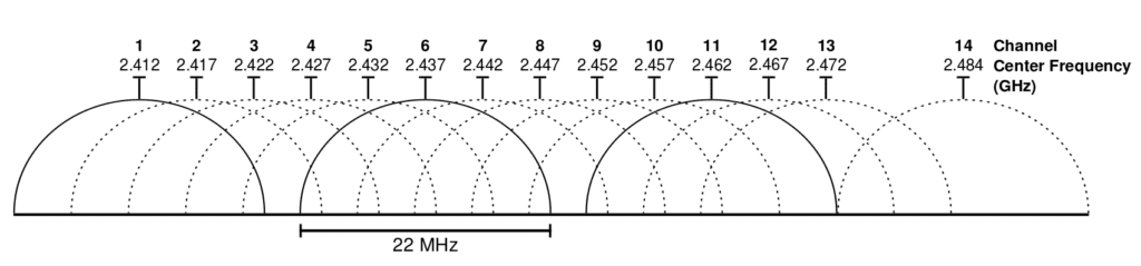 However, there are three channels that don’t overlap: 1, 6 and 11, as you can see in the image below. Co-channel interference is where devices take turns talking, so the more devices on one channel, the longer it takes for a device to talk since it has to wait for its turn.